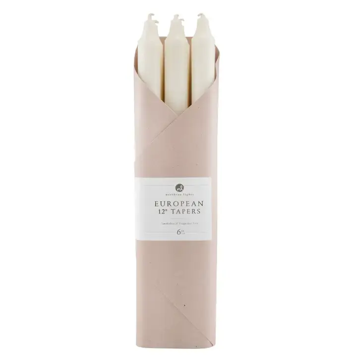 Premium quality, fragrance free, European-style 12" tapers in a 6pc gift set.