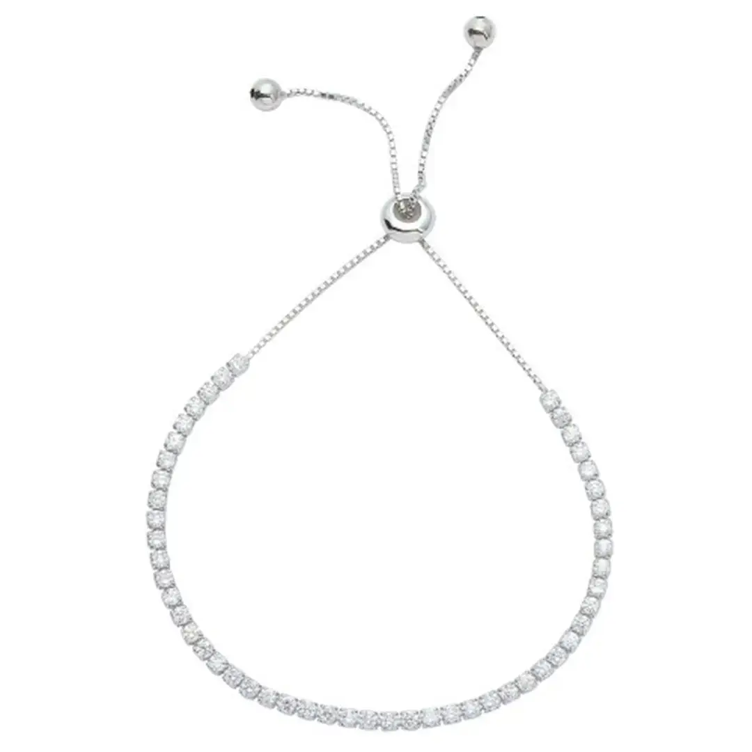 Adjustable Bolo Tennis Bracelet with Pull Ties Silver