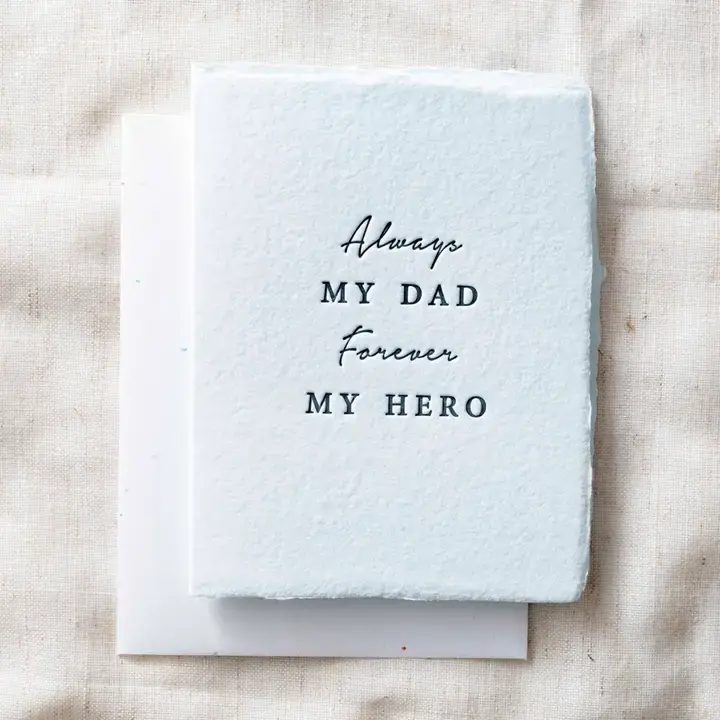 Our handmade deckled edge paper collection is letterpress printed in-house late at night with lots of coffee. This card is meant to be treasured for years to come. Handmade paper beautiful enough to frame and helps us ensure there was no slave labor in our supply chain.