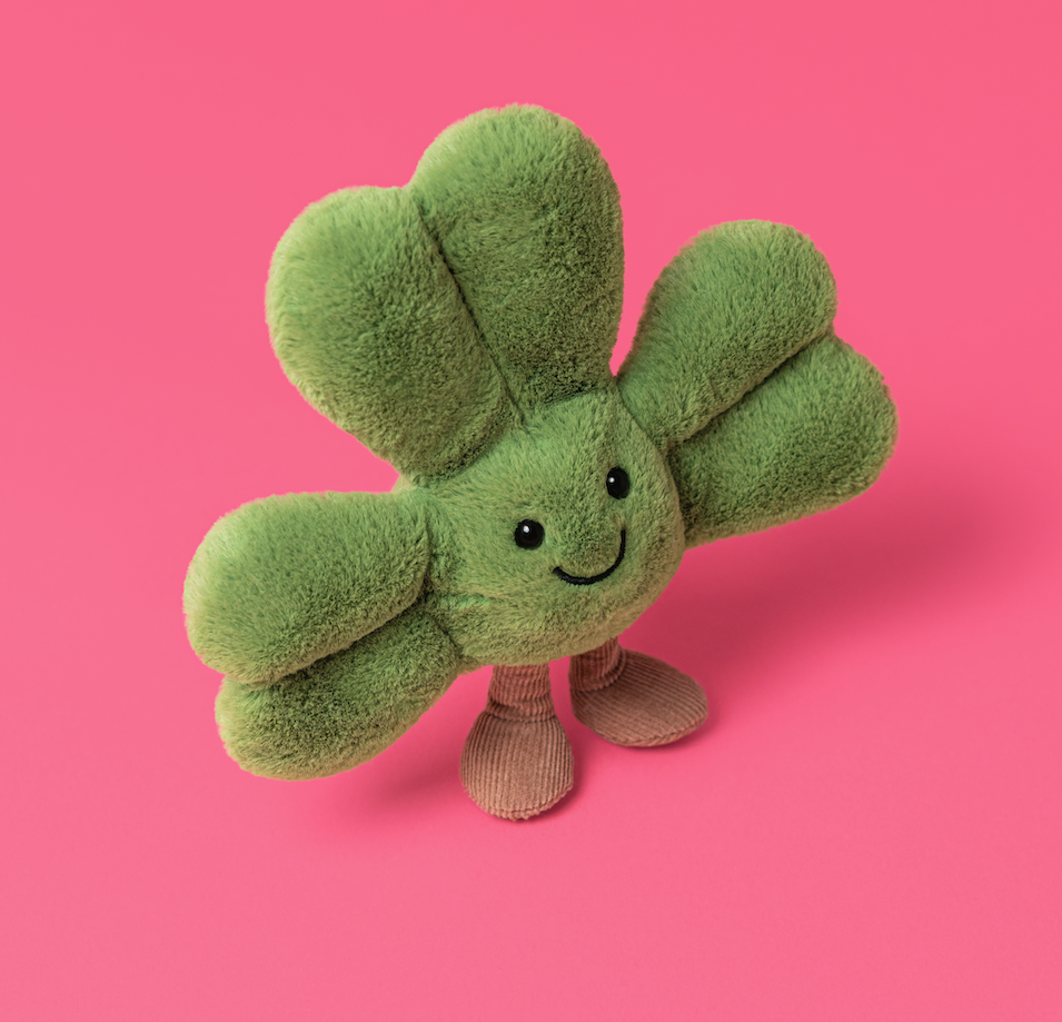 A natural-born optimist, Amuseables Siofra Shamrock, can find the silver lining in any situation. Her glass isn’t half full; it’s positively overflowing (with something green and sparkly, most likely).