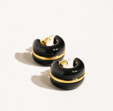 Arlo 18K Gold Small C Hoop Earring - Black