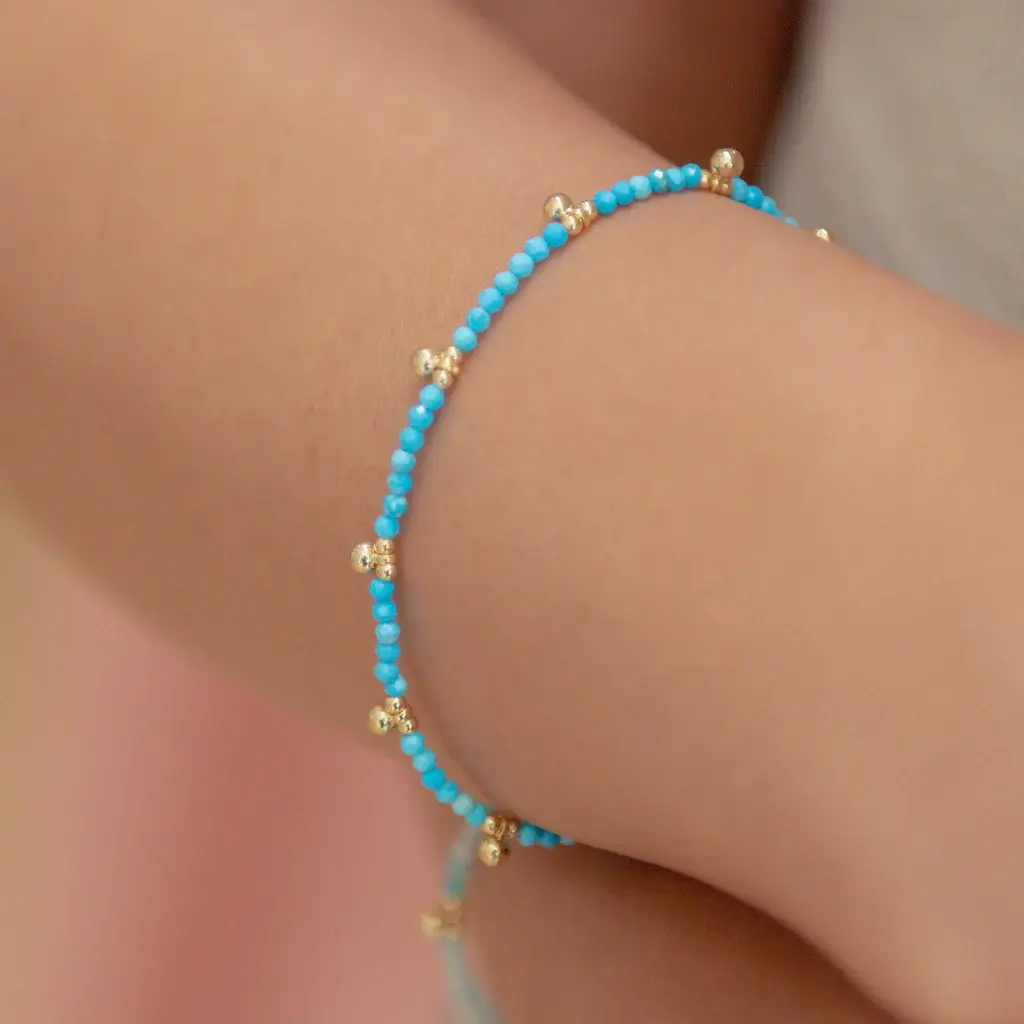A string of stones featuring tiny gold-beaded nuggets for added interest.