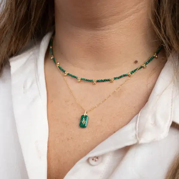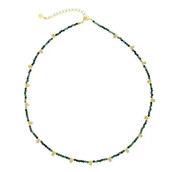 A string of stones featuring tiny gold-beaded nuggets for added interest.