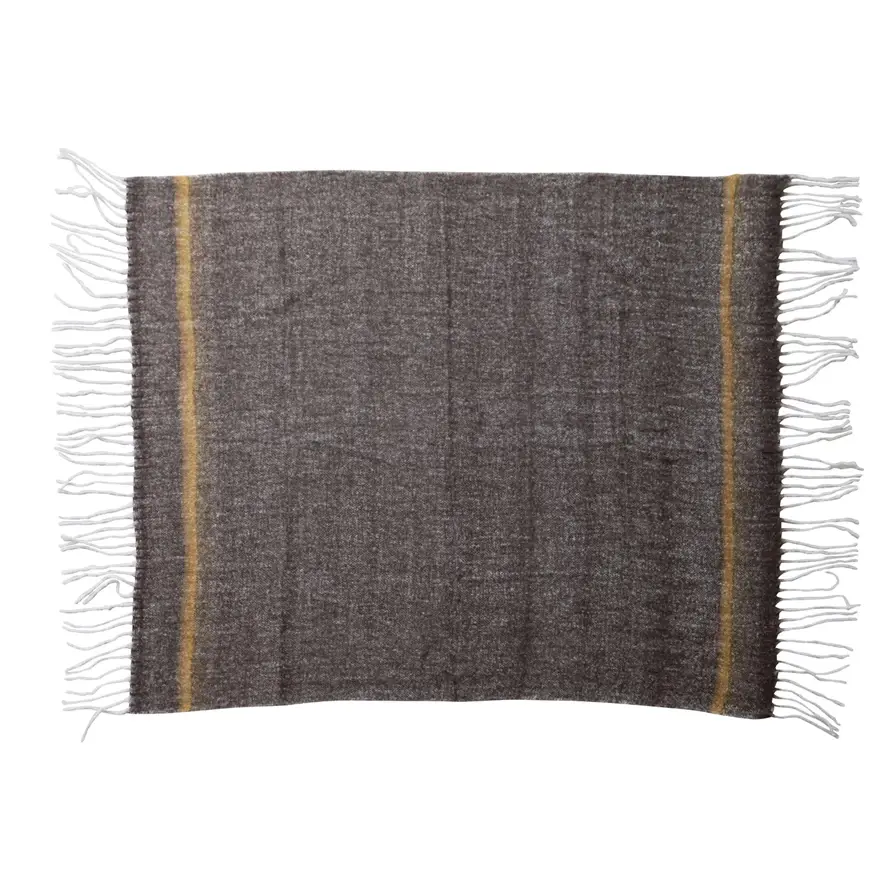 Brushed Acrylic & New Zealand Wool Throw with Stripe & Fringe - Gray