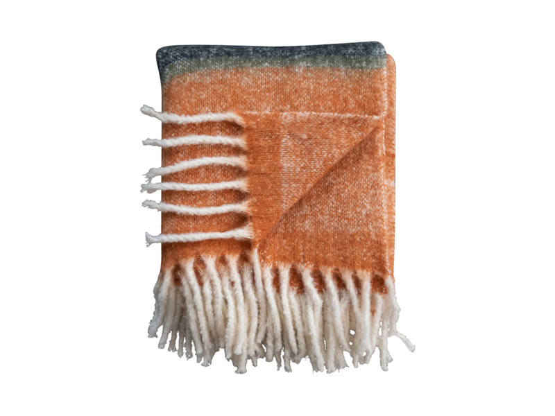 Brushed New Zealand Wool Throw w/ Stripes & Fringe