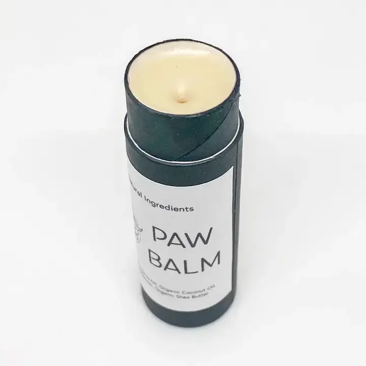Paw balm is like lotion for your dogs paws! It soothes cracked and dry toe beans in both the summer and winter. Made with 100% natural ingredients. Organic coconut oil, organic shea butter, organic white bees wax and olive oil.