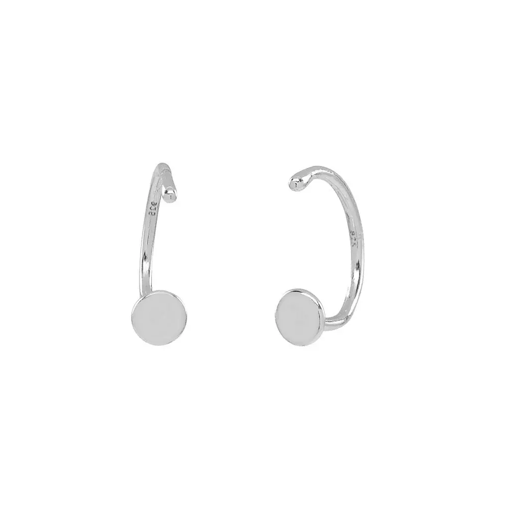 A mini hoop that wraps around the ear lobe with an open-end. Featuring a solid tiny circle that sits on the lobe.