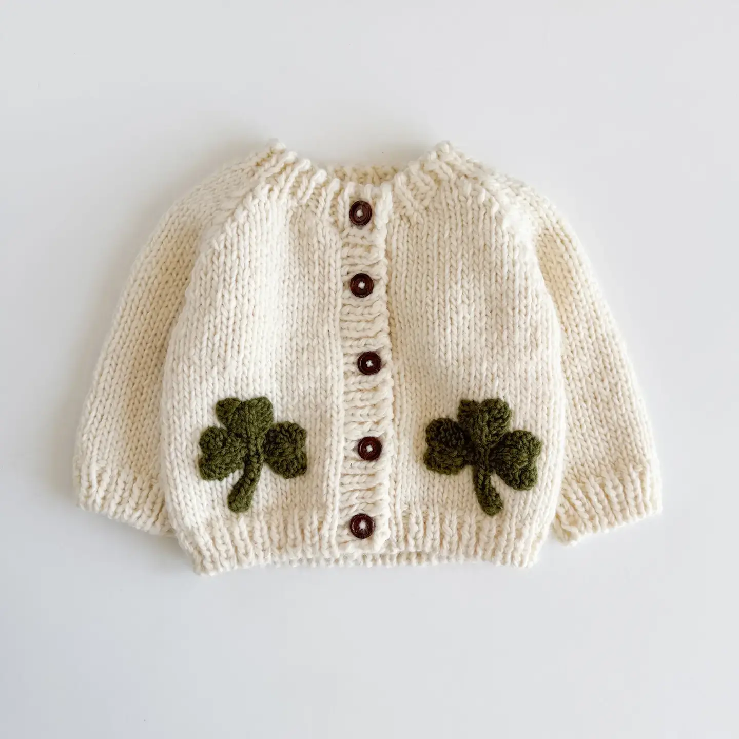 Clover Cardigan Baby Kids Shamrock Knit Apparel Lucky: XS, 6-12 month
