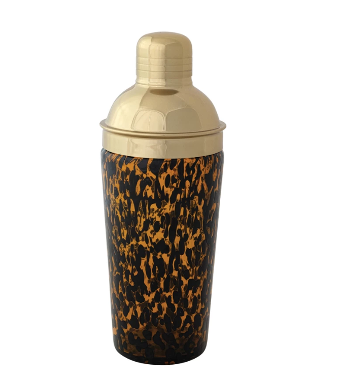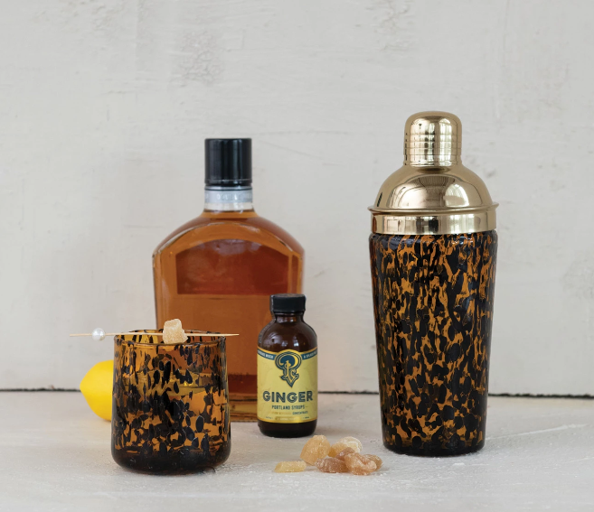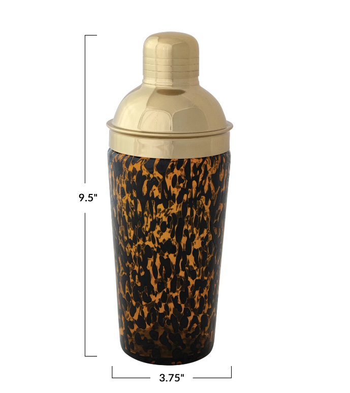 Confetti Glass Cocktail Shaker w/ Stainless Steel Top, Tortoise Shell & Gold Finish; 20oz.