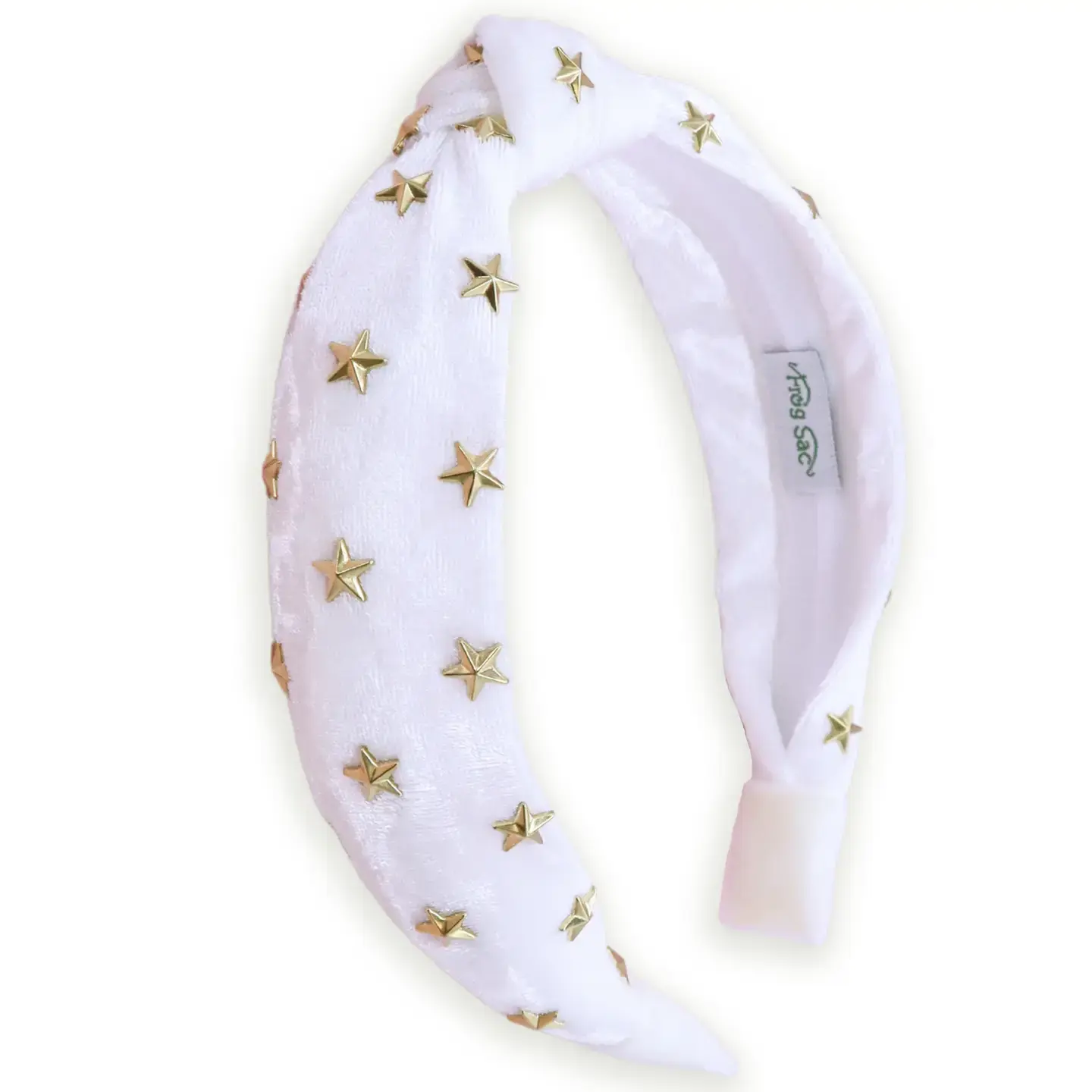 Kids Knot Headband - White Star Stud Velvet Hair Accessories