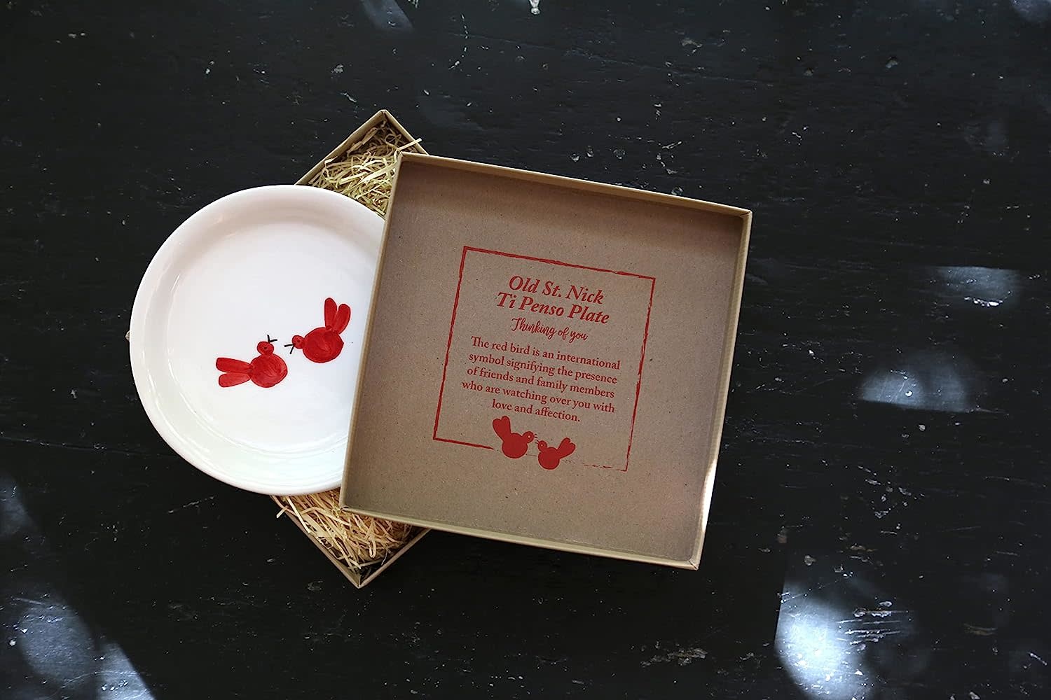 When you see a red bird, know a loved one is near. Ti penso, meaning "Thinking of you," symbolic on the Old St. Nick Ti Penso Plate, is a gentle reminder that our loved ones are watching over us.