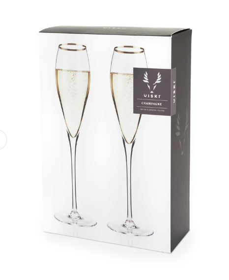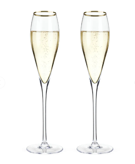 Gold Rimmed Crystal Champagne Flutes, Set of 2
