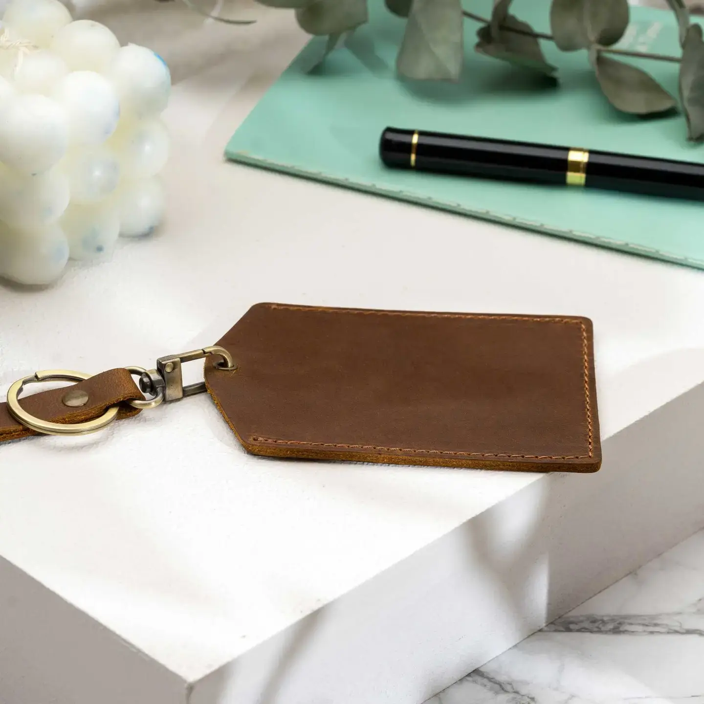 Genuine Leather Luggage Tag - Brown