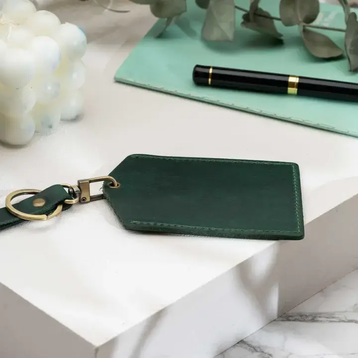 Genuine Leather Luggage Tag - Green