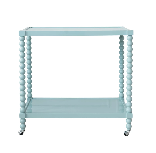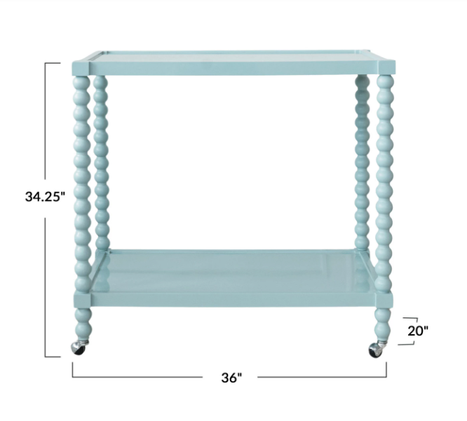 36"W x 20"D x 34-1/4"H Rubberwood Lacquered 2-Tier Bar Cart on Casters w/ Turned Legs, Blue