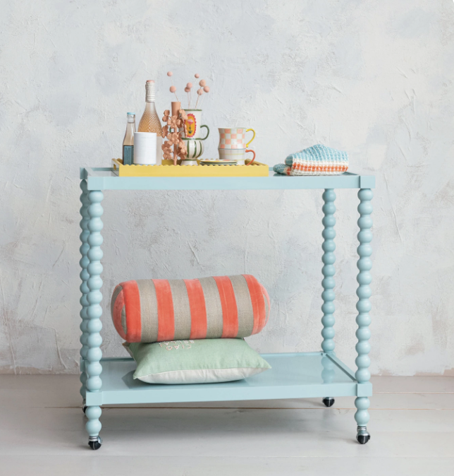 This Rubberwood Lacquered 2-Tier Bar Cart is the epitome of functional elegance. The striking blue finish provides a bold contrast to the natural wood grain, while the dual tiers offer ample space for an array of items, from cocktail supplies to decorative accents. Each shelf can support up to 44 pounds, making it as sturdy as it is stylish. The smooth caster wheels ensure mobility, allowing anyone to bring the party to any room. Measuring 36 inches long, 20 inches wide, and 34.25 inches high, this bar cart is a perfect fit for homes that celebrate a mix of farmhouse charm and eclectic flair. Whether used for serving drinks or displaying cherished items, it's a piece that's sure to become a focal point in any space.