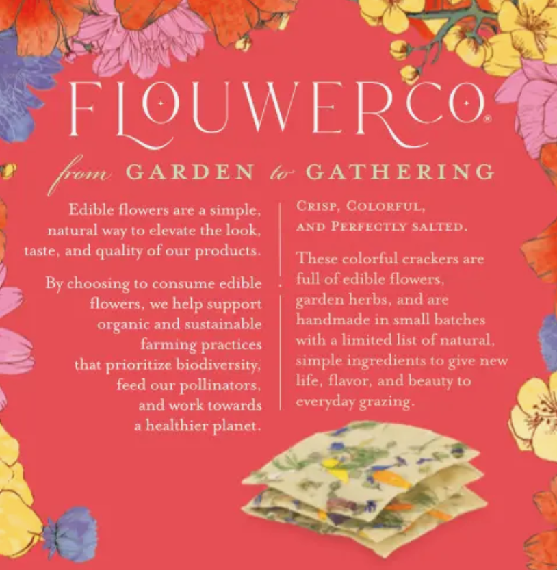 Handcrafted, all natural, plant-based, artisanal crackers with edible flowers and fresh herbs to give new life, flavor, and beauty to everyday grazing.