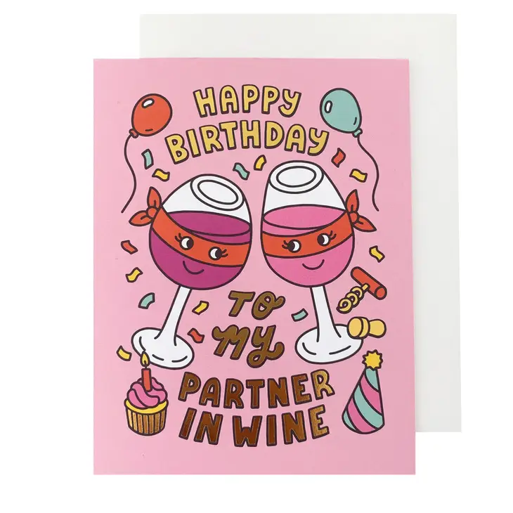 Greeting: "Happy Birthday to my Partner in Wine" (Blank Inside)