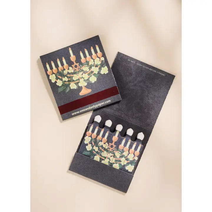 Perfect for lighting the menorah, this matchbook features an illustrated floral menorah.