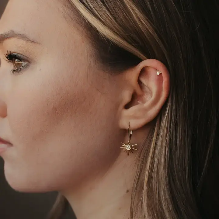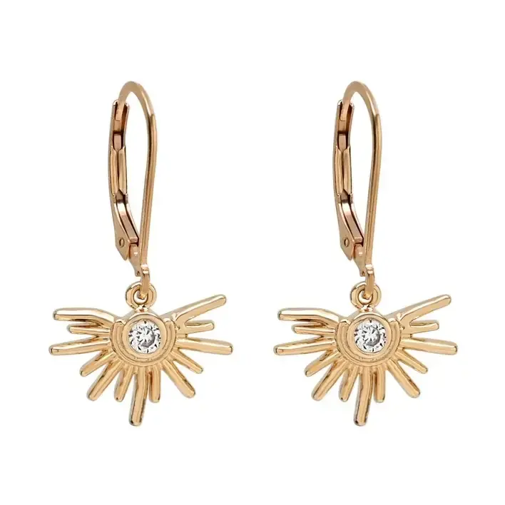 CZ Starburst Leverback Earrings, Clear