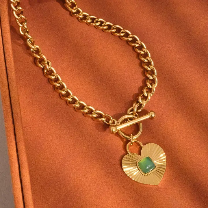 18K Gold Non-Tarnish Green Heart Chain Necklace