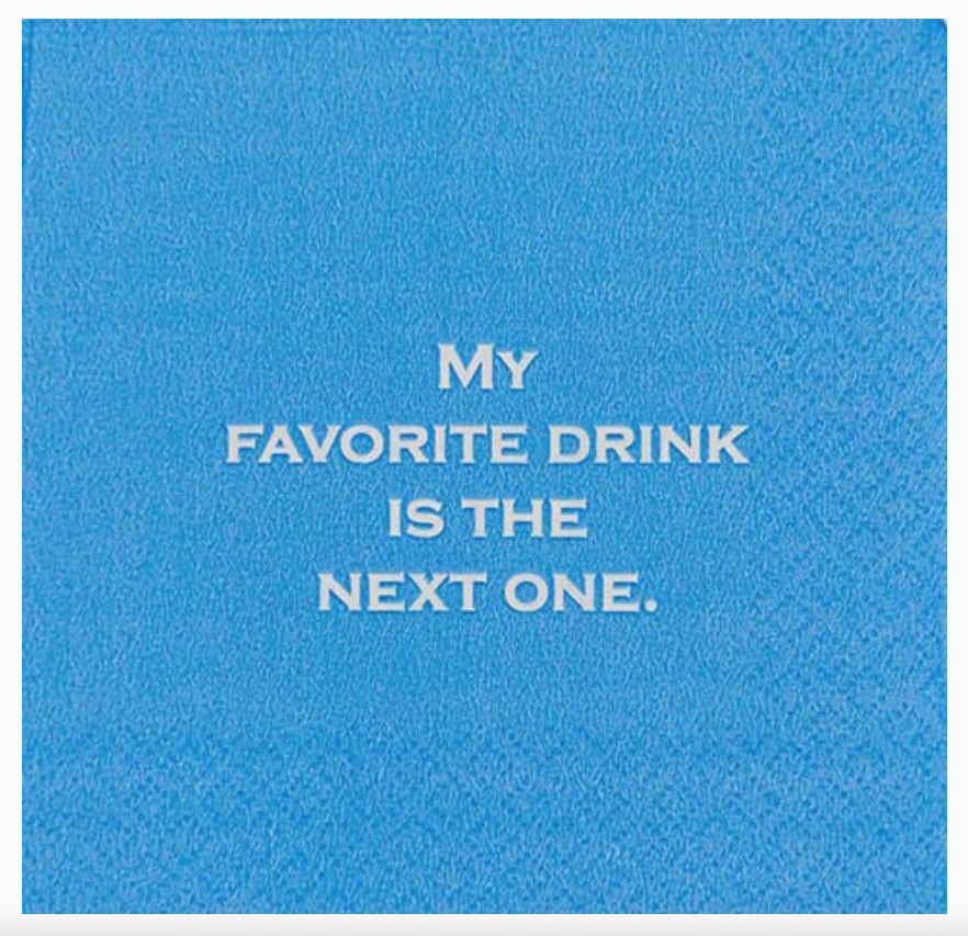 My favorite drink is the next one cocktail napkin is perfect for your next girls’ night or cocktail party! This Carolina blue and white cocktail napkin is such a fun addition to any party or luncheon! Both men and women love this fun saying! You can also pair this little number with a bottle of wine for a most coveted hostess gift! Each pack contains 20 5 x 5 three-ply cocktail napkins *super thick* packaged in polypropylene. Stock up for your next book club or to give to the hostess!