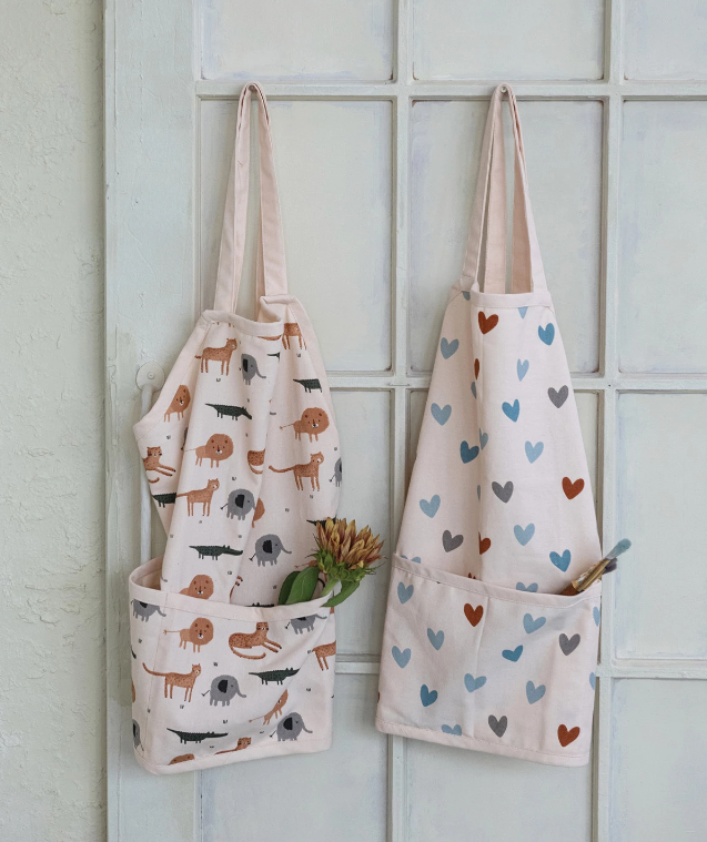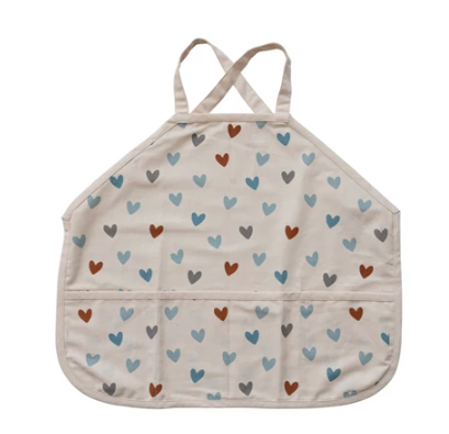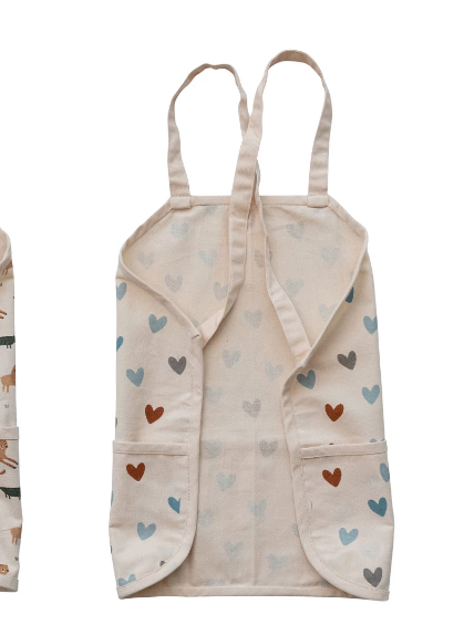 Cotton Cross Back Printed Child Apron with 3 Pockets - Hearts