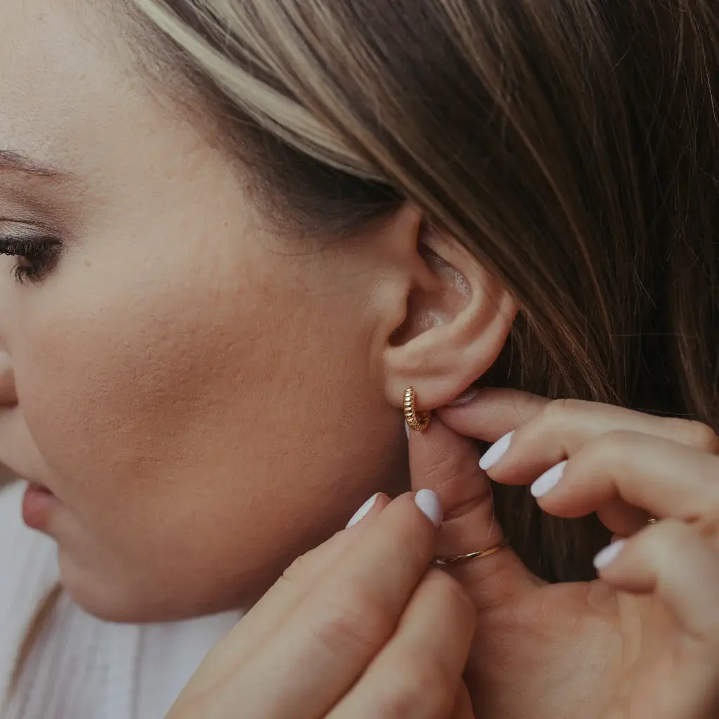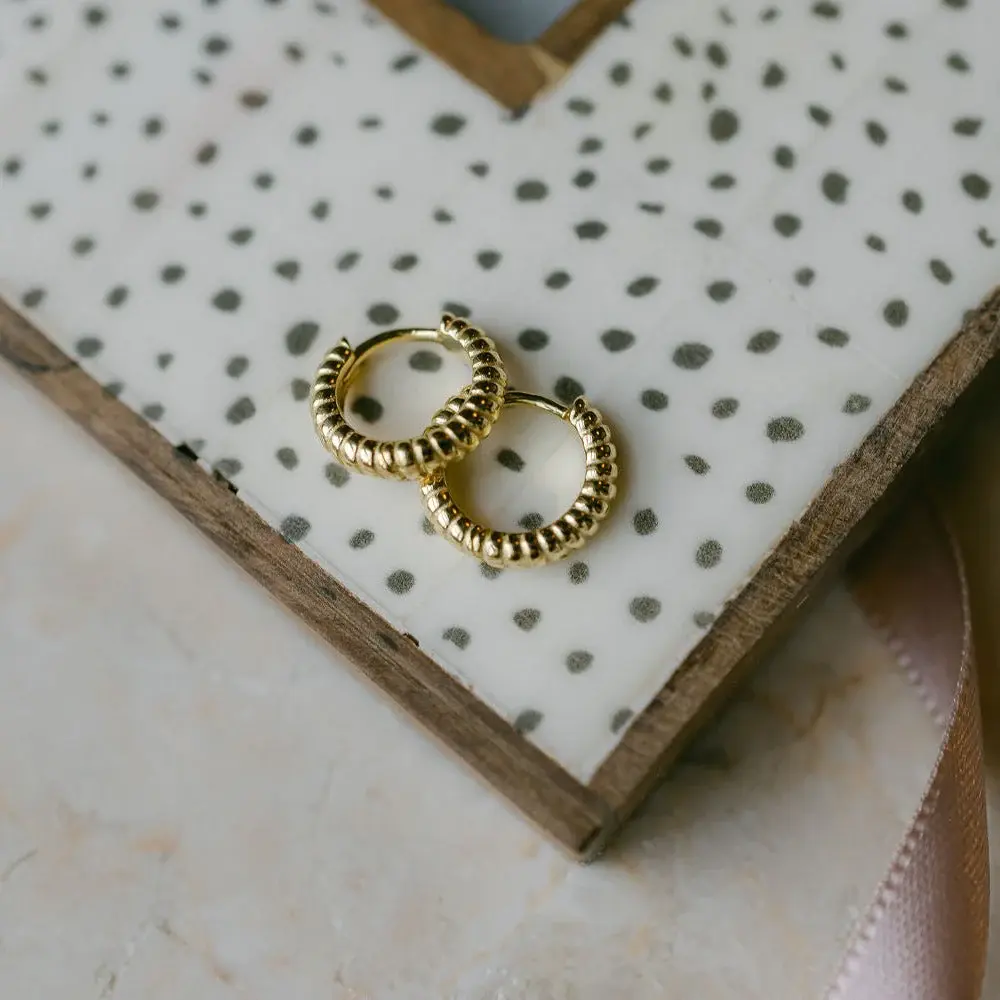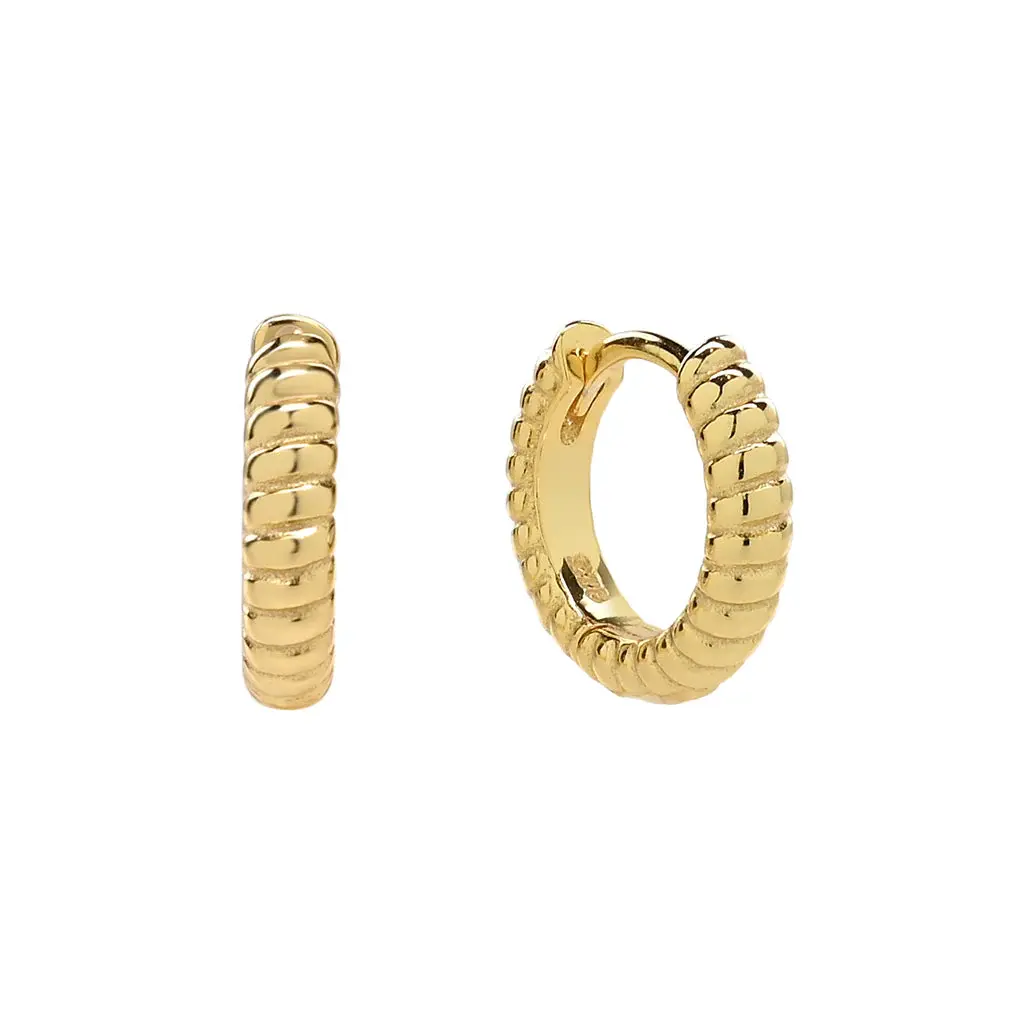 A go-to huggie. A fun spiral croissant shape that looks good with everything.