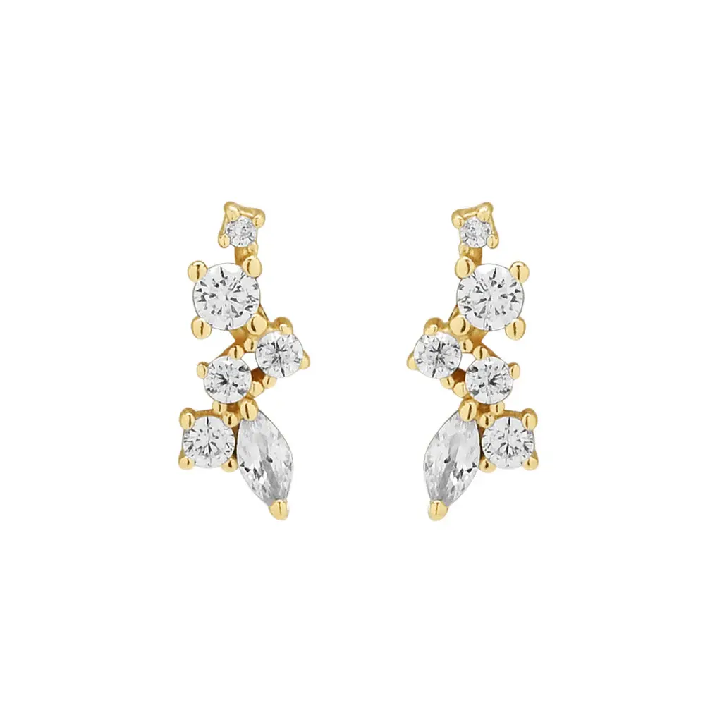 Curved Multi-CZ Cluster Studs, Gold Vermeil