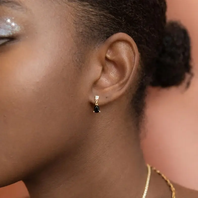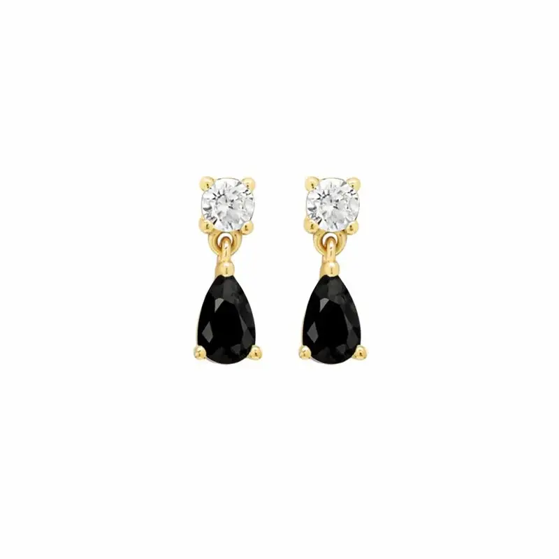 CZ Black / Clear Dangle Teardrop Studs - Gold Vermeil