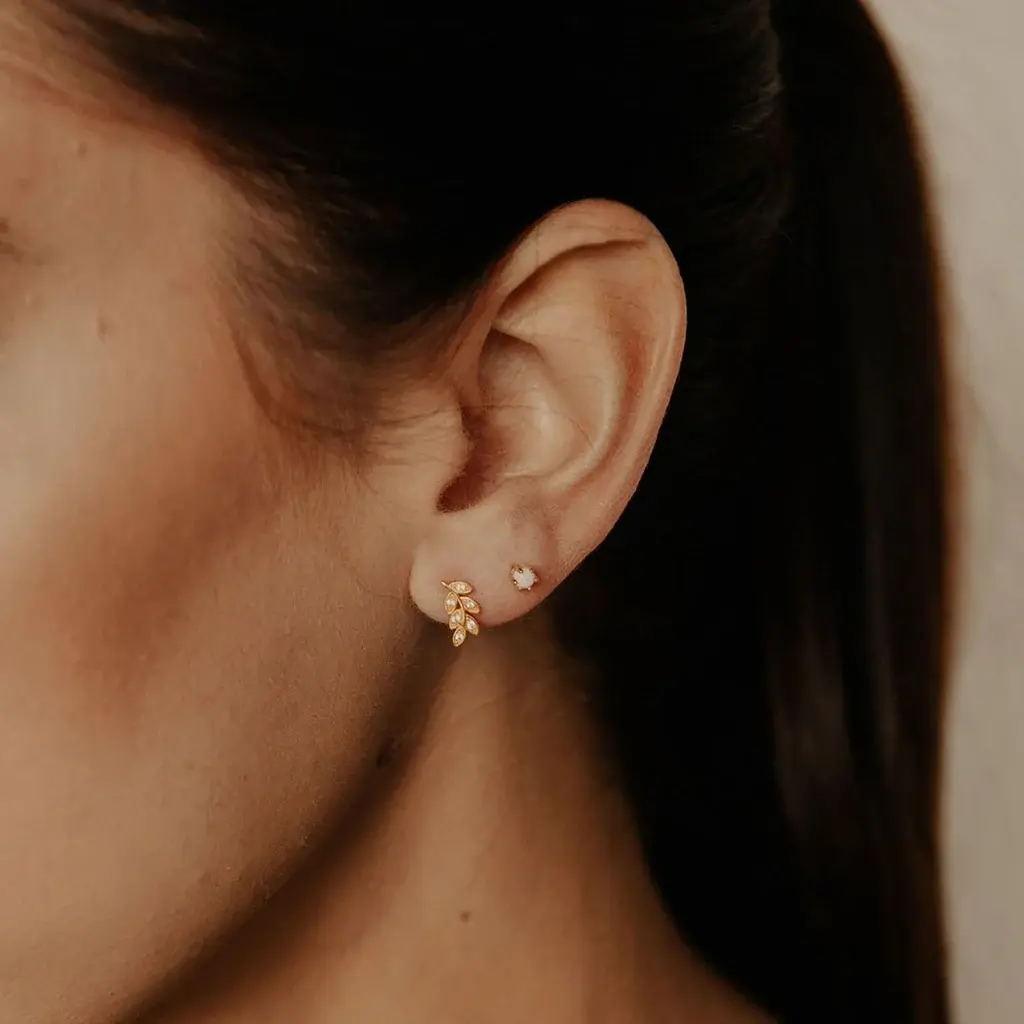 Get in touch with nature with these dainty leaf studs that crawl up the ear with lots of sparkles.