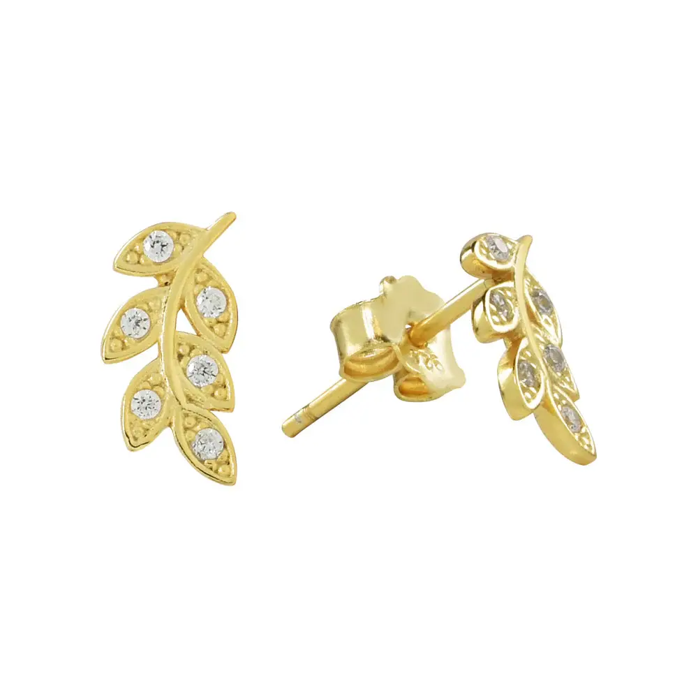 CZ Leaf Studs, Gold Vermeil