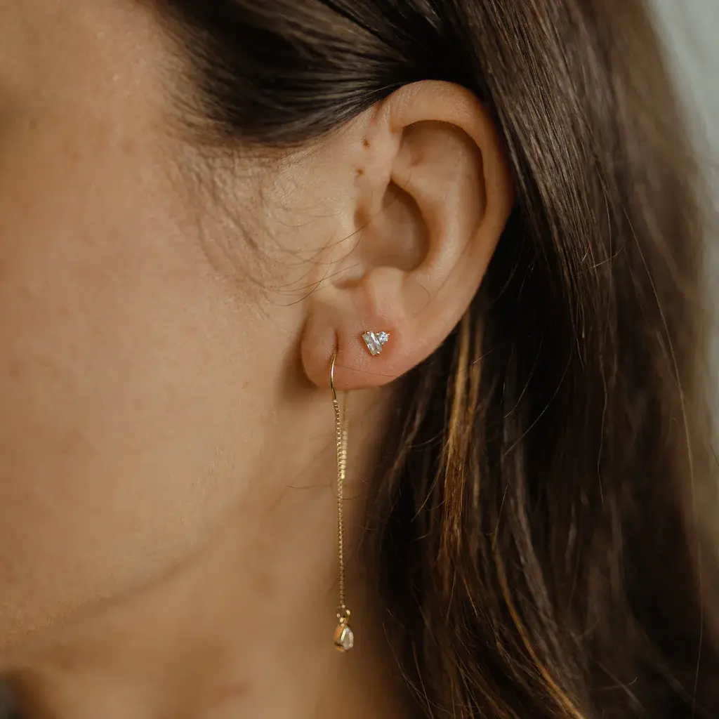 CZ Round & Baguette Combo Studs, GV