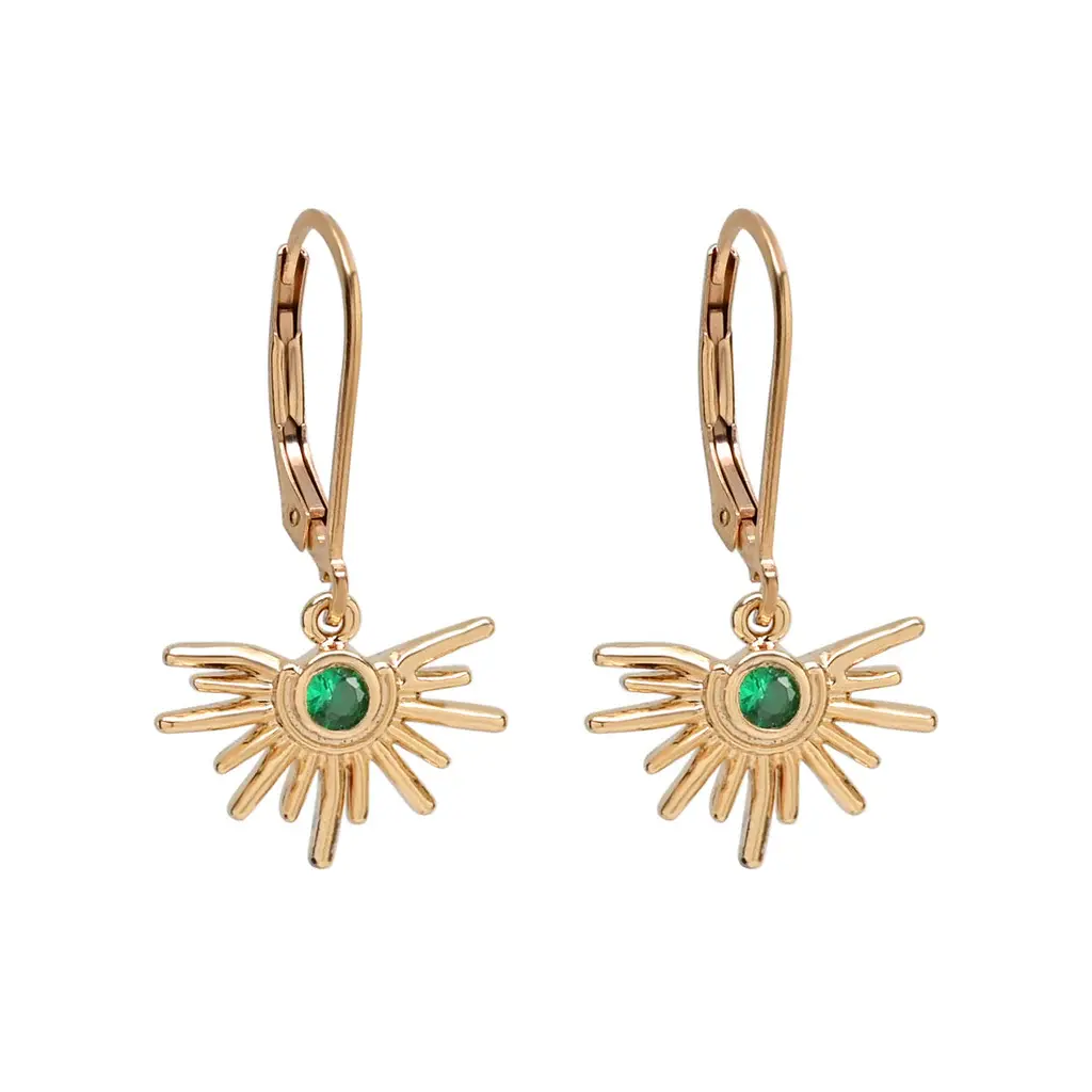 CZ Starburst Leverback Earrings, Green