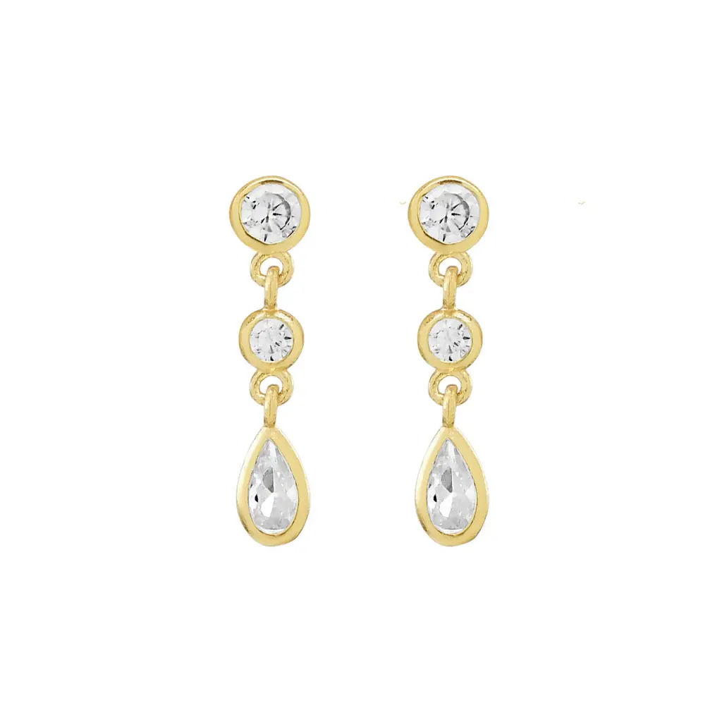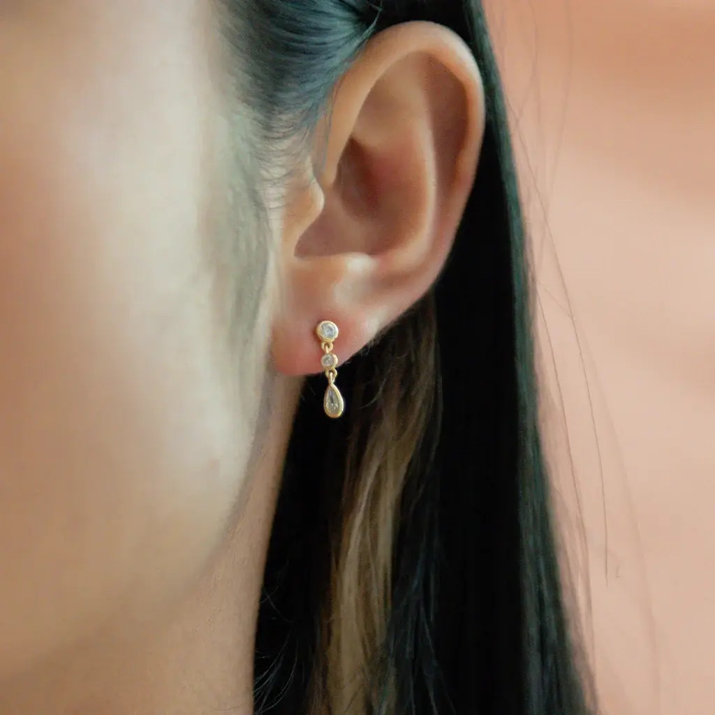 Double CZ Teardrop Dangle Studs