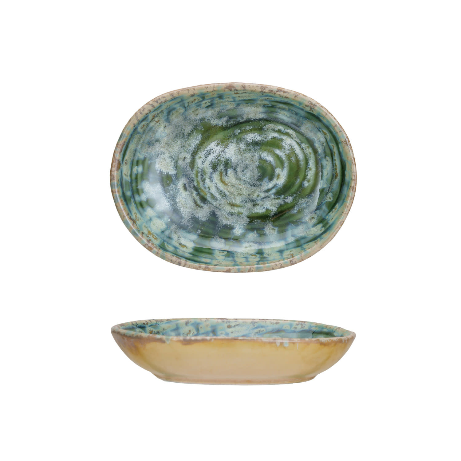 4"L x 3-1/4"W Embossed Stoneware Dish, Reactive Crackle Glaze, Teal (Each One Will Vary)