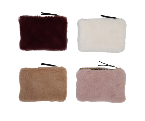 Faux Fur Fabric Zip Pouch with Interior Lining, 4 Colors