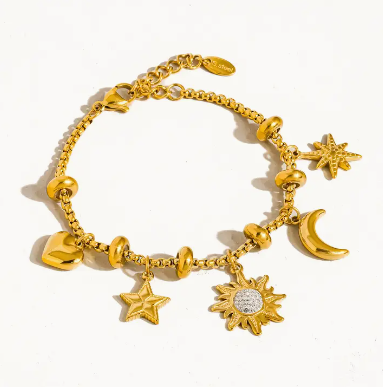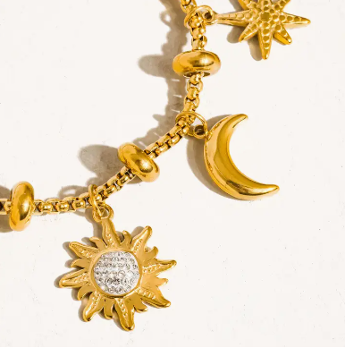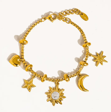 Fenix 18K Gold Non-Tarnish Star and Moon Charm Bracelet