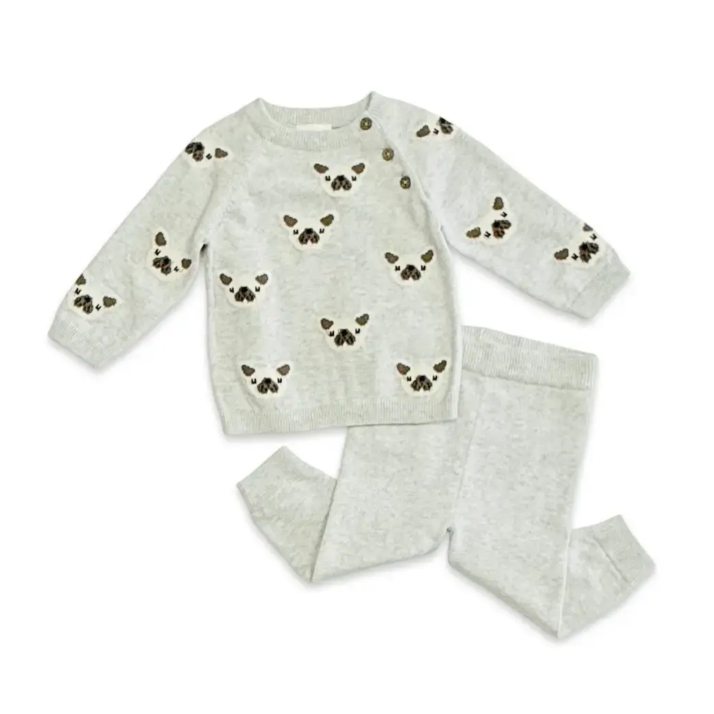Frenchie Puppy Jacquard Knit Baby Pullover + Pants Organic
