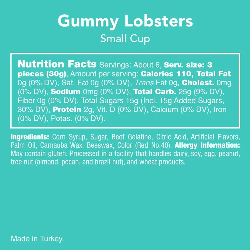 Claws-itively delicious and oceans of fun, these raspberry-flavored gummy lobsters are the sweetest! These sea gummies are sure to make a splash! Gummy Red Lobsters are a perfect addition to a nautical event, or just because you love berry gummies!