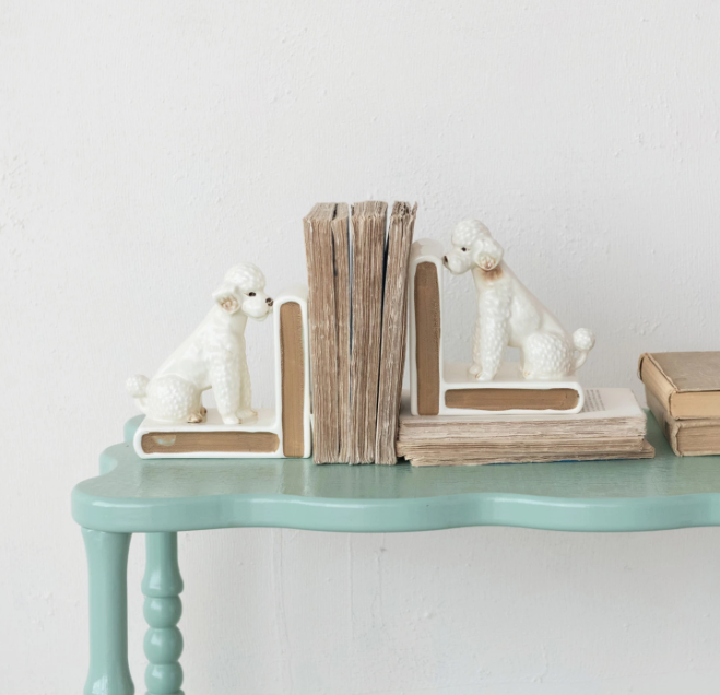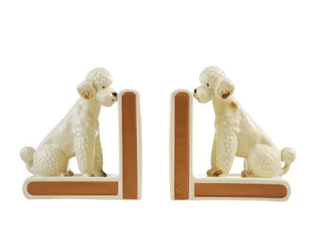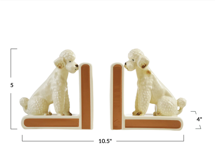Hand-Painted Stoneware Vintage Reproduction Poodle Shaped Bookends, Set of 2