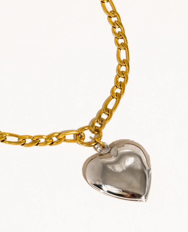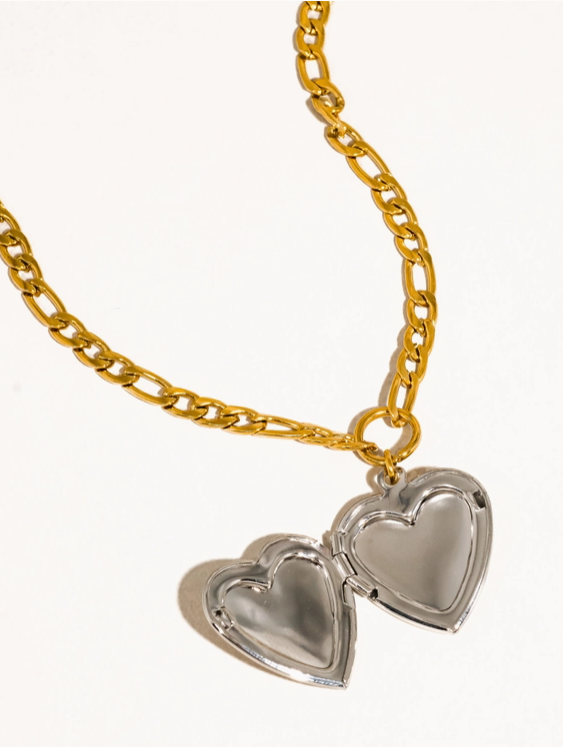 Heidi 18K Gold Non-Tarnish Two Tone Heart Locket Necklace