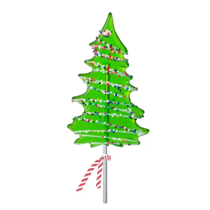 This item comes in lime green (apple) and is embedded with candy nonpareils with a chocolate drizzle. Each lollipop is hand-poured to order; slight variations will occur.