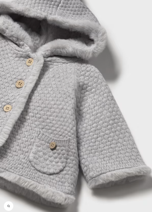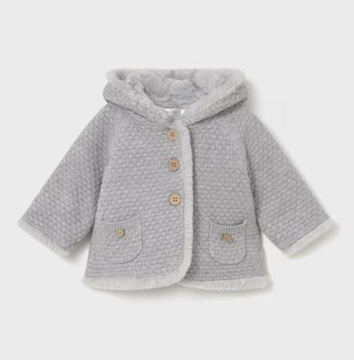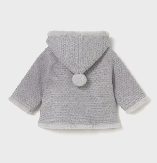 Knit Jacket with Faux Fur Pom - Steam Grey