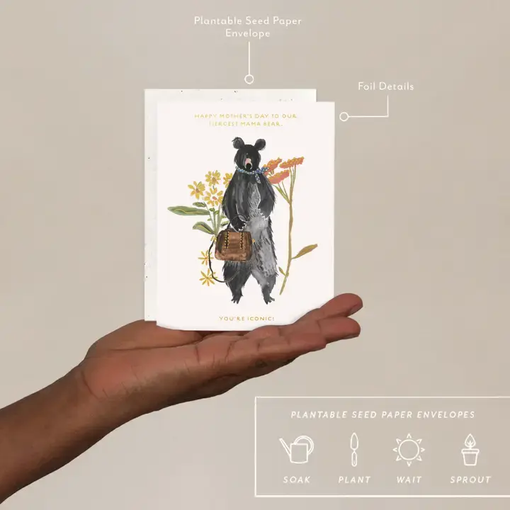 All Seedlings greeting cards have foil details and a PLANTABLE seed paper envelope which is embedded with wildflower seeds. This seed paper is made of a biodegradable eco-paper created with post-consumer materials - no trees harmed for this paper! When planted, our envelopes compost away leaving only flowers behind. Blank inside, our cards are printed on premium paper and are all accented with foil details. All Seedlings cards are made in the U.S.A.