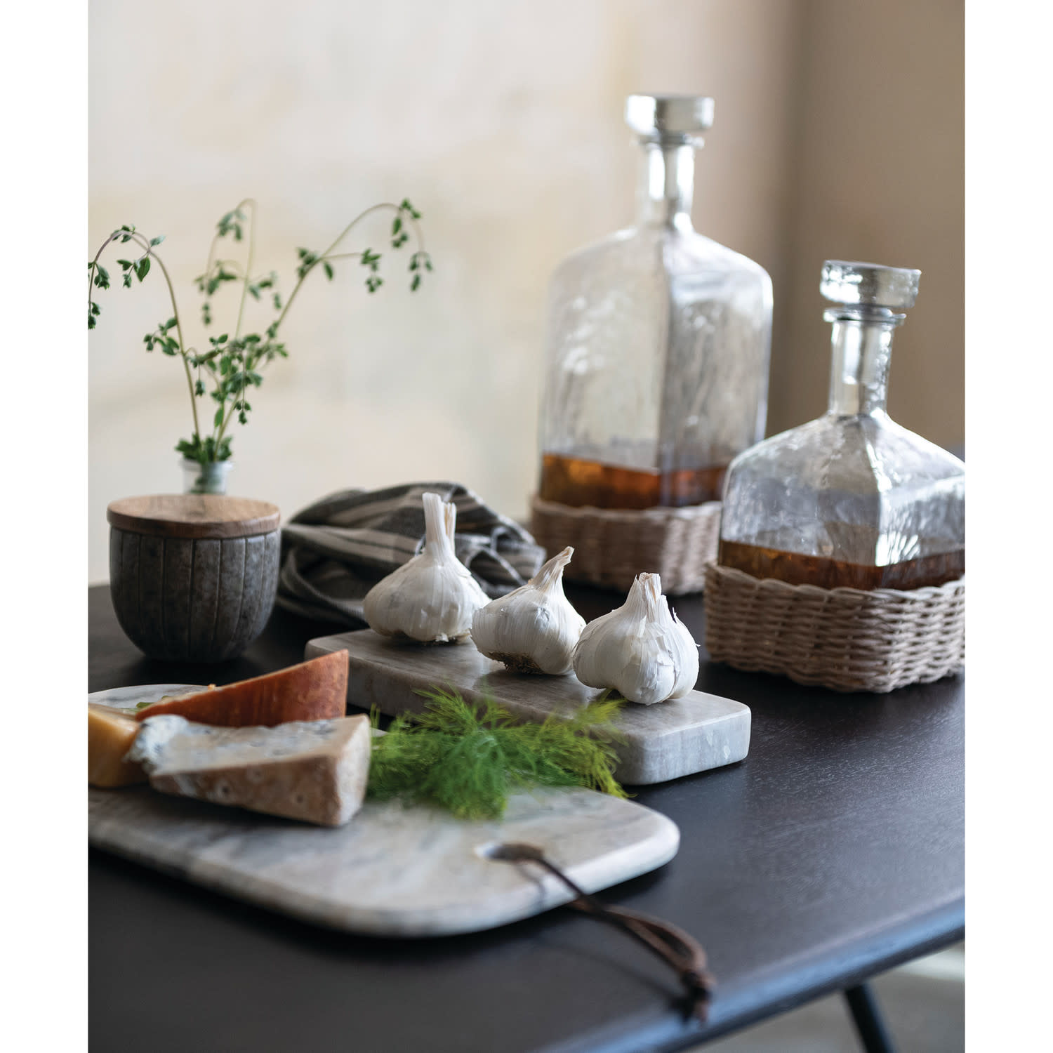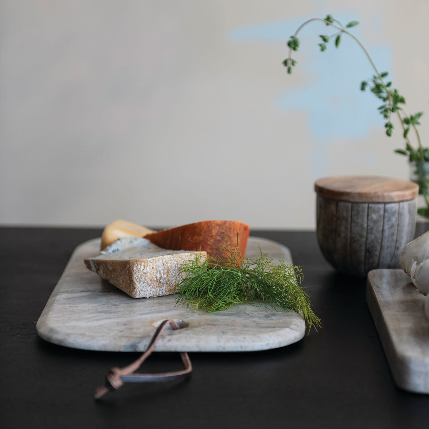 Marble Cheese/Serving Board with Leather Tie, Buff Color