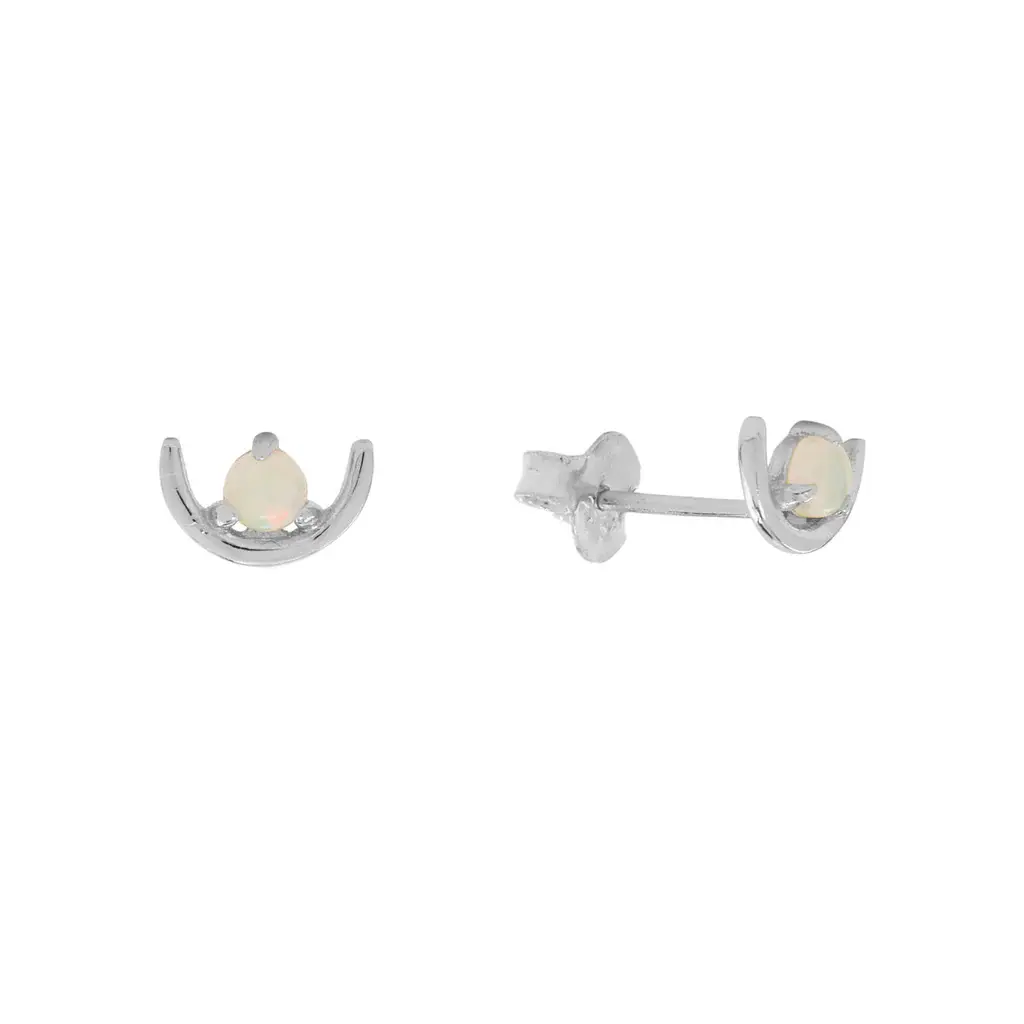 A tiny arc-shaped stud with a dreamy opal prong setting.