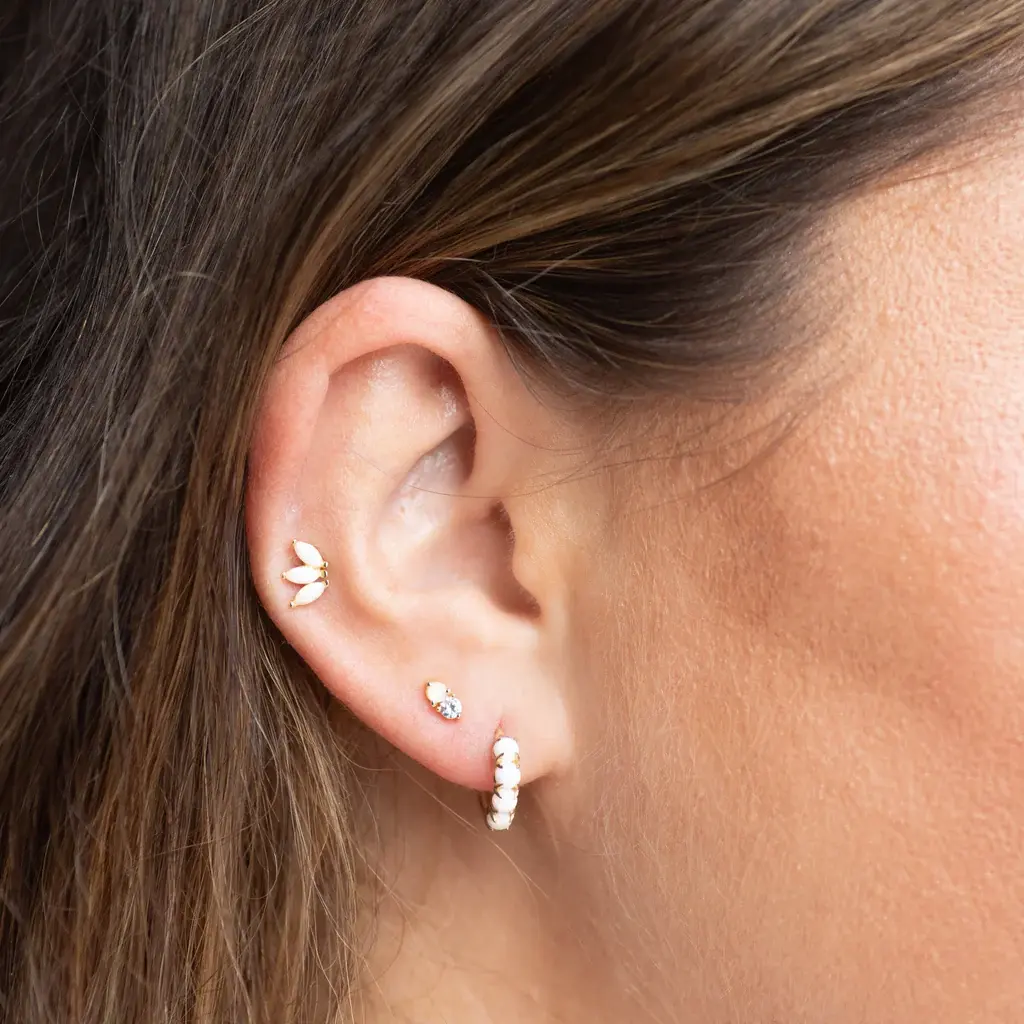Make a statement with these stunning studs, featuring three fanned marquise-shaped opals that radiate vibrant color and light. The unique design offers a modern, yet elegant touch, with the opals' iridescent glow adding a playful and sophisticated vibe to any outfit.