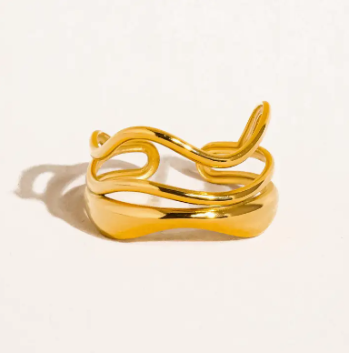 Ozzy 18K Gold Non-Tarnish Abstract Ring w. Open Back
