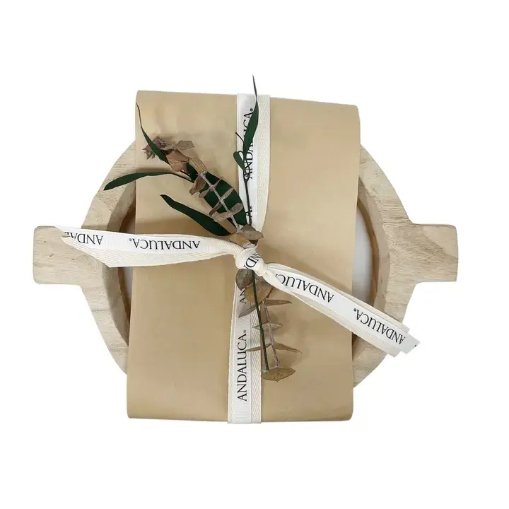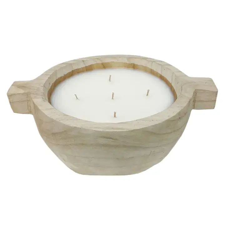 Made with our Paulownia wood round bowl with handles, and using a soy wax blend with a subtle palo santo fragrance so that it doesn't overpower yet adds a beautiful natural smell to the already natural look.